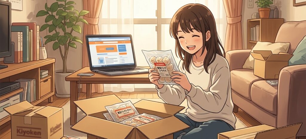 Amazon真空パックシウマイ(15個入、30個入など)配送が早く、ポイントが貯まる。価格が公式より割高に設定されている場合がある。